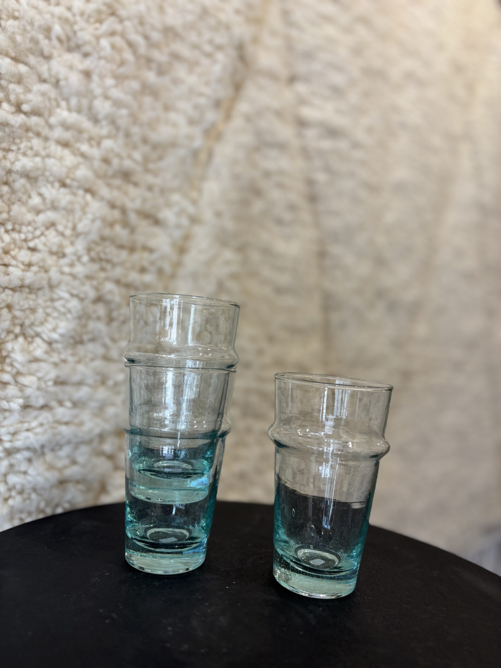 Dit in Marokko traditioneel handgeblazen glas is gemaakt van gerecycled glas en is geschikt voor in de vaatwasser.