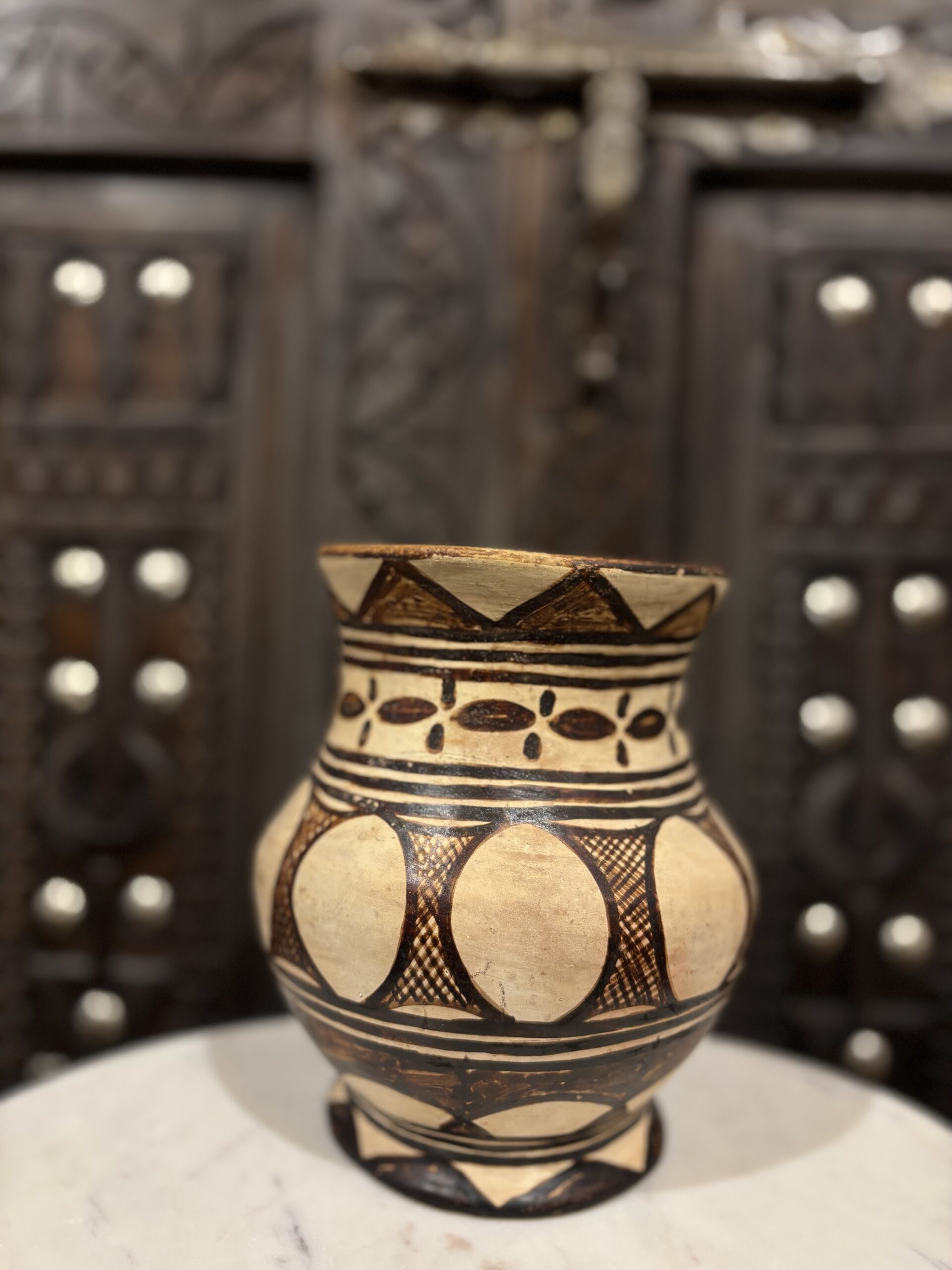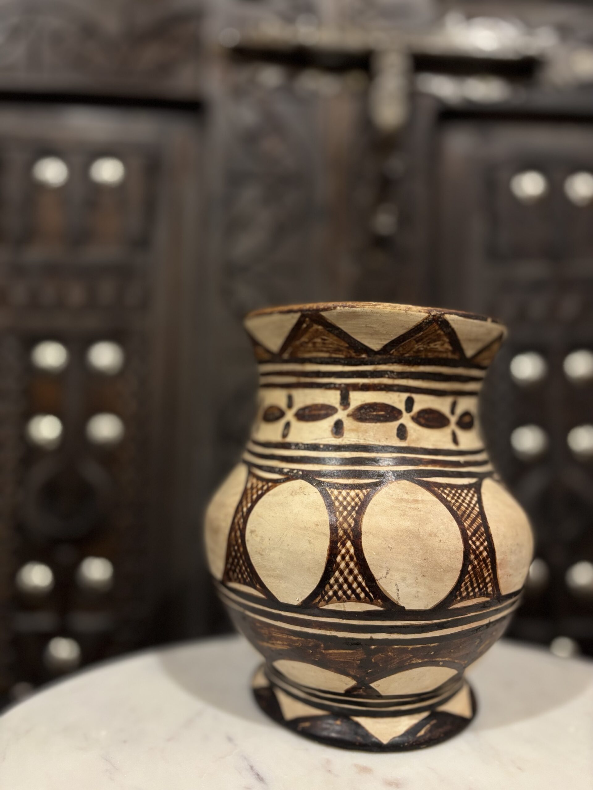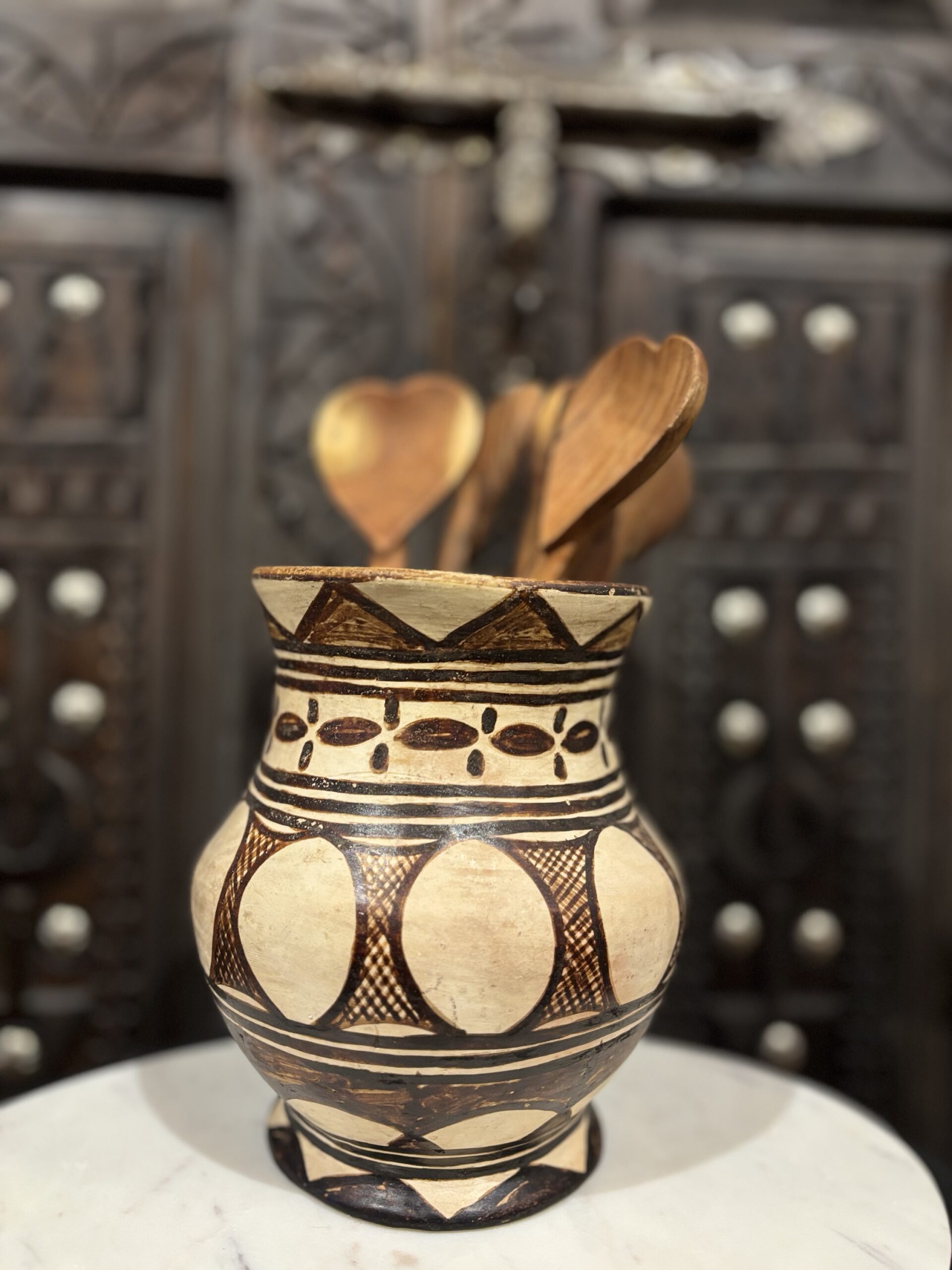 Deze berber kruik is gemaakt in Marokko. De kruik is beschilderd met Henna. Ideaal om je pollepels in te zetten of om decoratief neer te zetten.