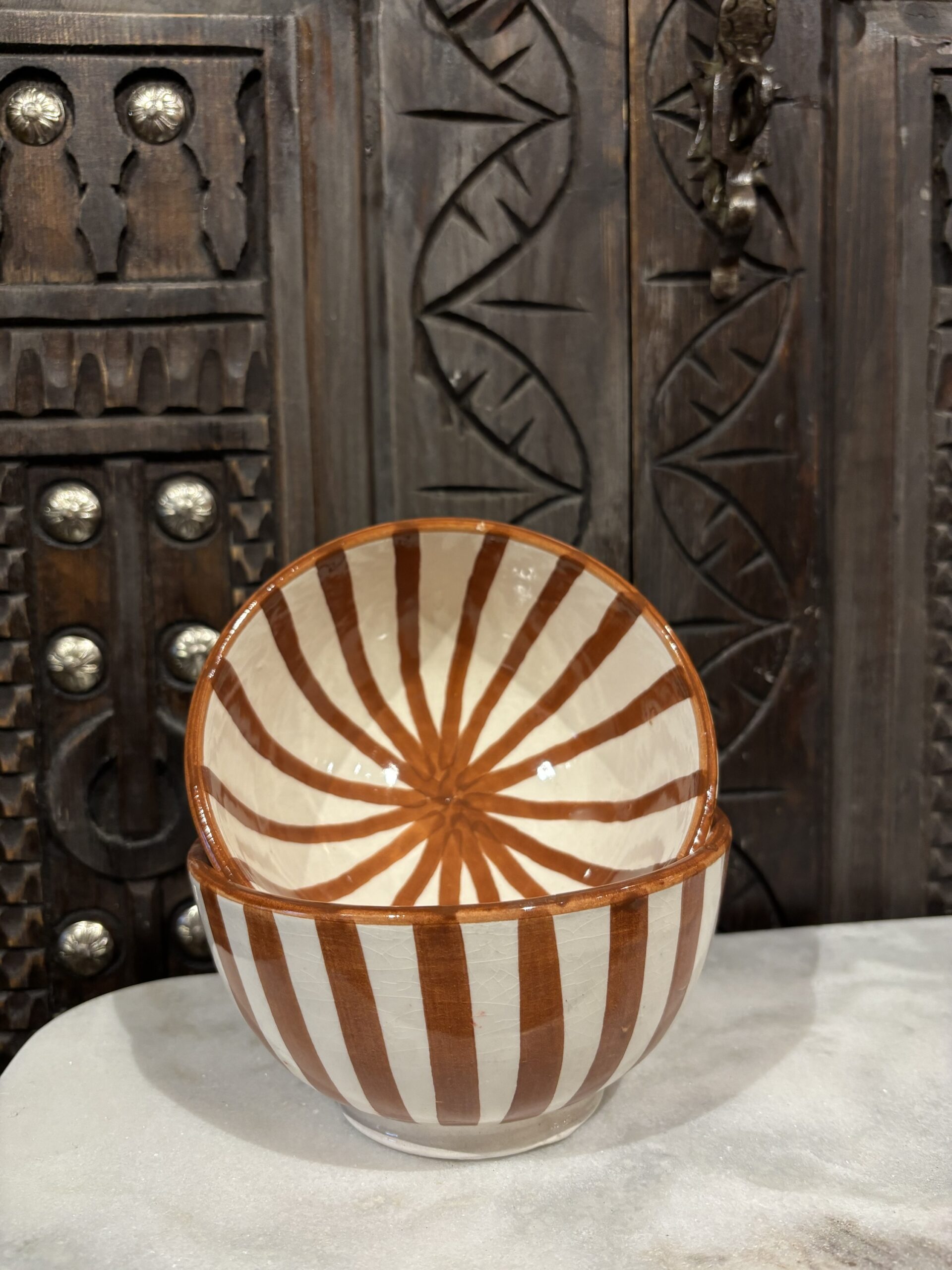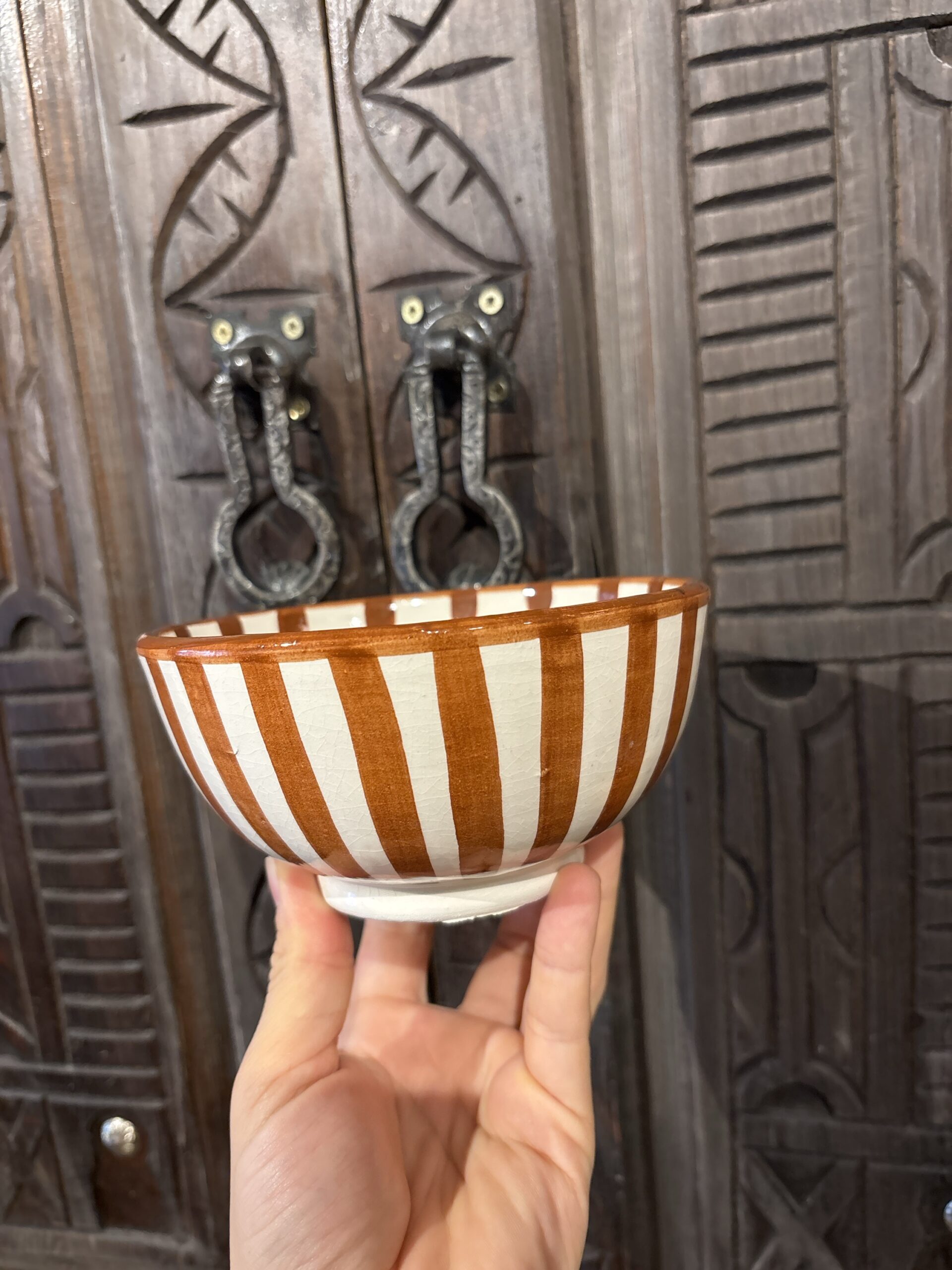 Handgemaakte kom uit Marokko met een warme, bruine uitstraling. Perfect voor je muesli, yoghurt of kleine borrelhapjes.