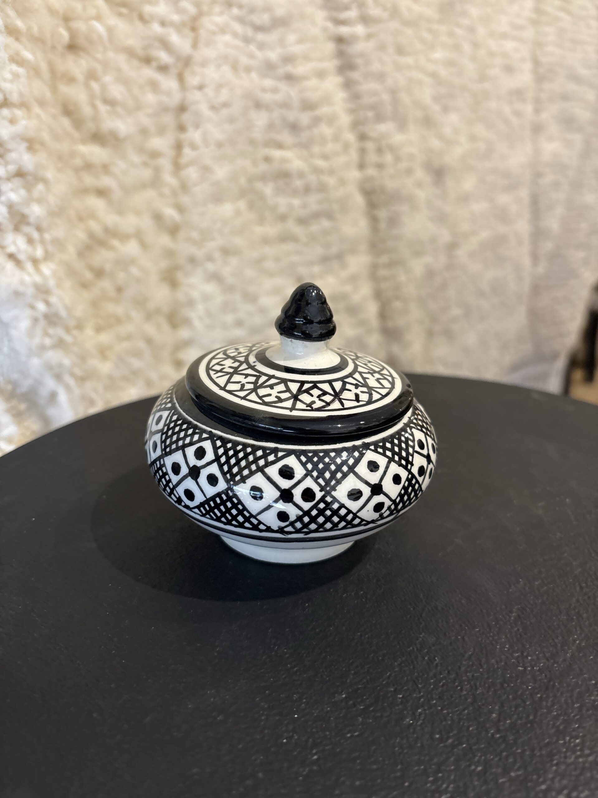 Dit suikerpotje is handgemaakt in Fes, Marokko.