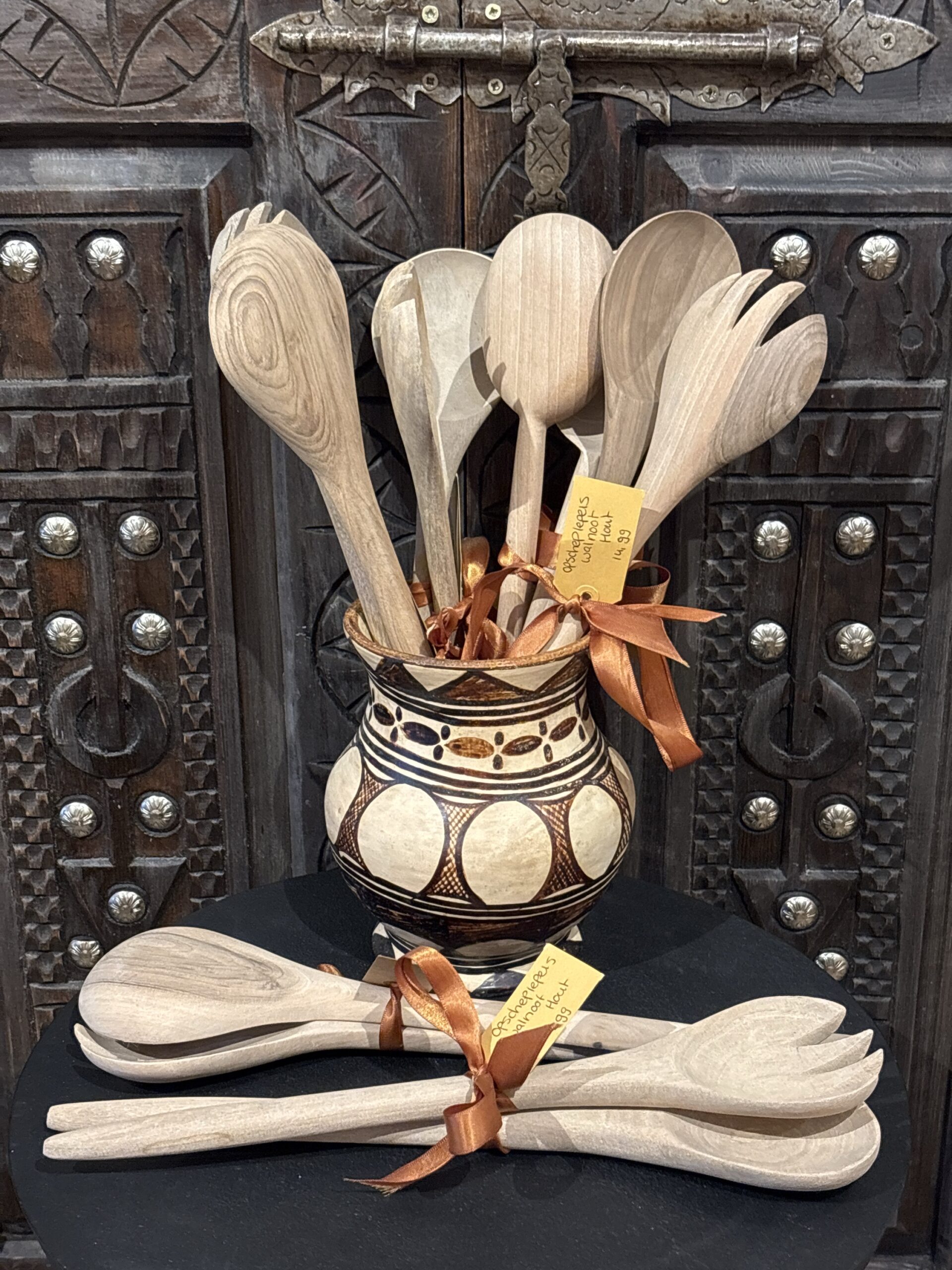 Deze opscheplepels zijn gemaakt in Marokko. Ze zijn handgemaakt van walnoot hout.