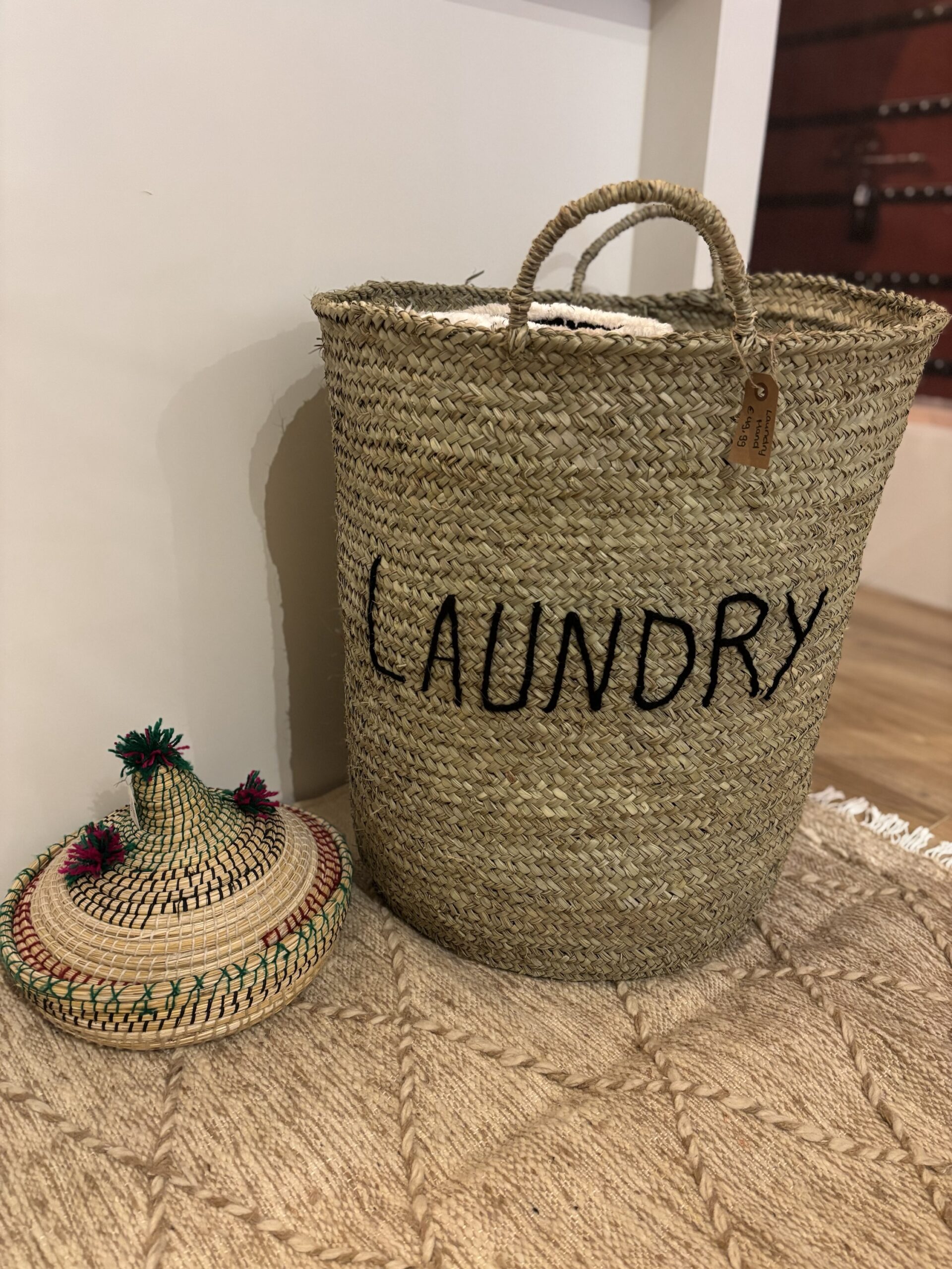 Deze rieten handgemaakte wasmand zonder deksel past in ieder interieur.
